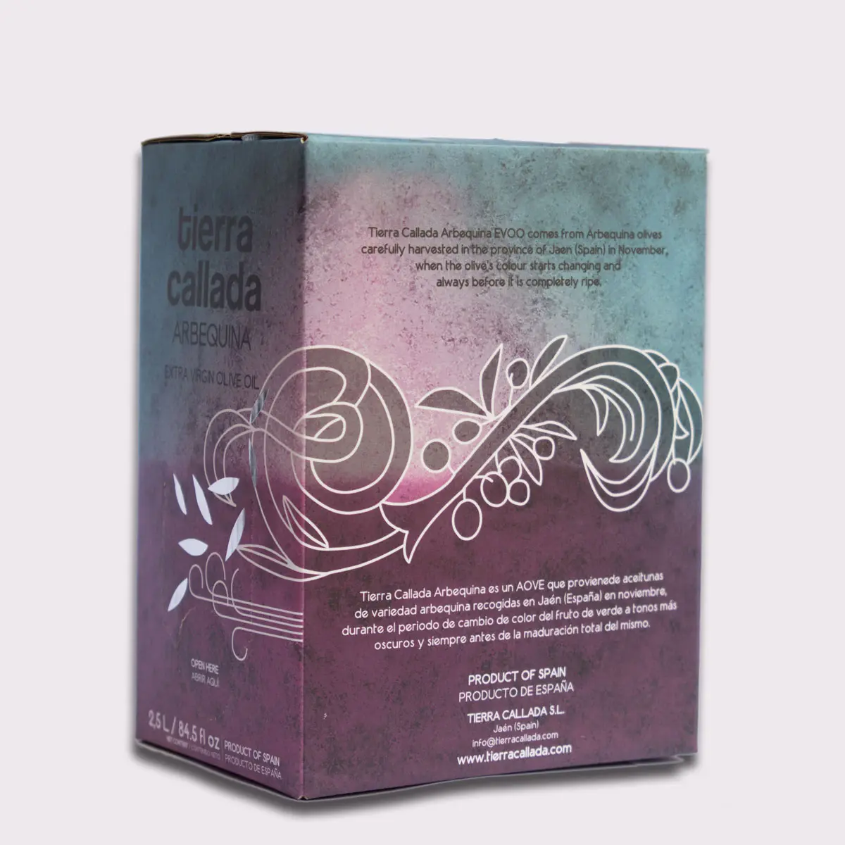 Extracted from arbequina olives collected when the olive is half way on the ripening process, usually through the month of November. Tierra Callada Arbequina has ripe and green character, resulting into a delicate medium intensity sweet oil. You will recognize immediately ripe banana, honey and apple when you smell it. In the mouth you can find a hint of green grass, and a really slightly spicy and even lees bitter.